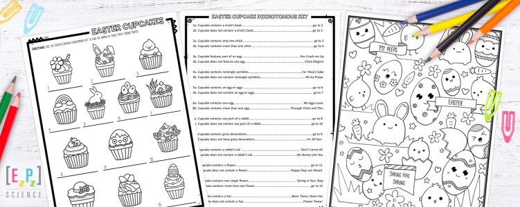 Y’all, if you have done any of my holiday cupcake dichotomous keys, you know I’m all about that pun. Puns are how eye roll (…. Get it!) Students will love discovering these Easter Cupcakes names like “For Peeps Sake” , “No Eggs-cuses” and “Chick Magnet” with this Easter Dichotomous Key. You can get the Easter Cupcake Dichotomous Key here and can see the complete list of Holiday Cupcake Dichotomous Keys here. Here’s a free Easter Color Sheet too.